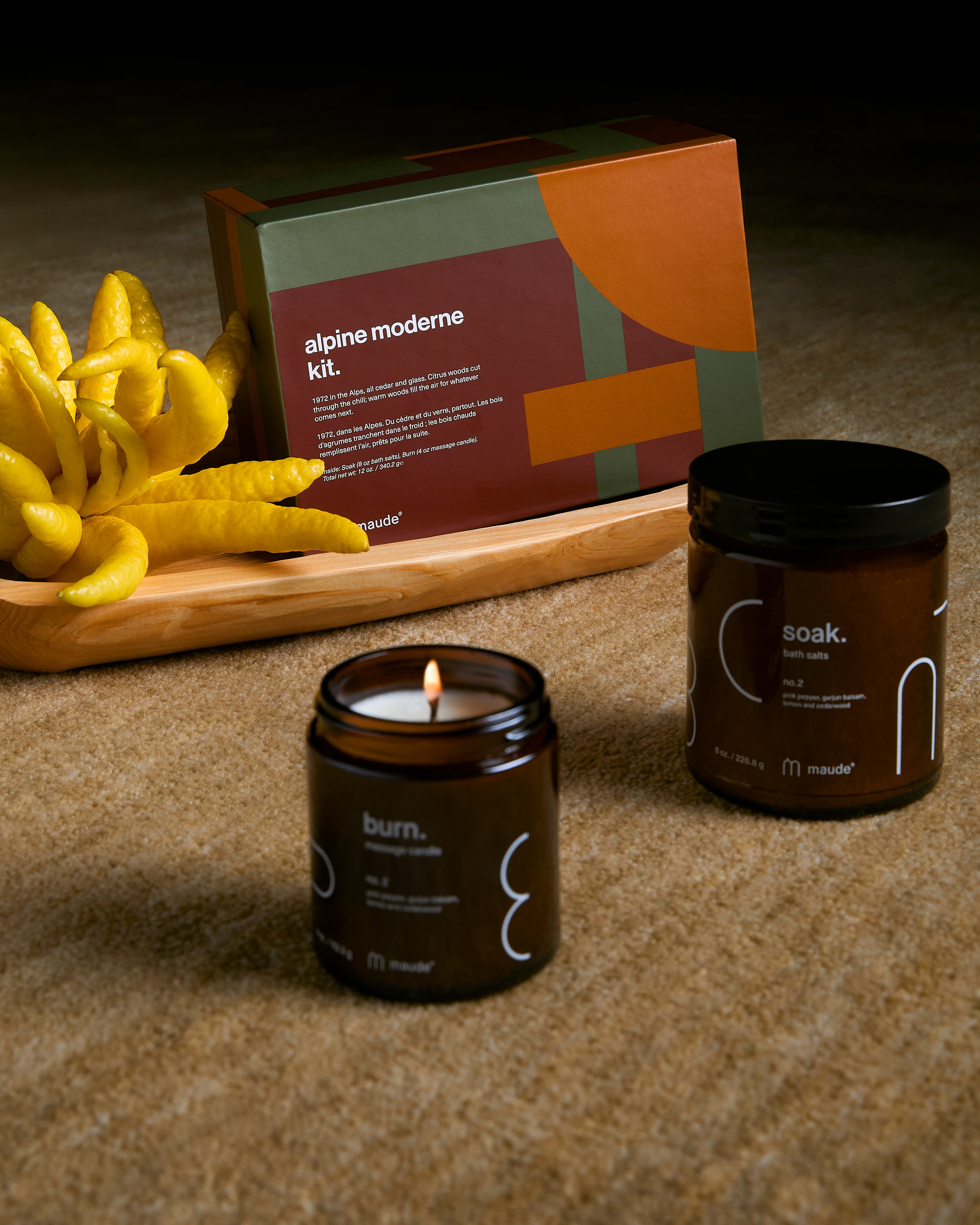 (alpine moderne) 1972 in the Alps, all cedar and glass. Citrus cuts through the chill, while warm woods fill the air for whatever comes next. California lemon sparks like a sunlit morning, softened by the delicate bite of pink pepper. Virginian cedar steadies the blend, grounding it in polished wood and stillness, while Gurjun balsam lingers, soft and enveloping, like fresh sheets after a long retreat.